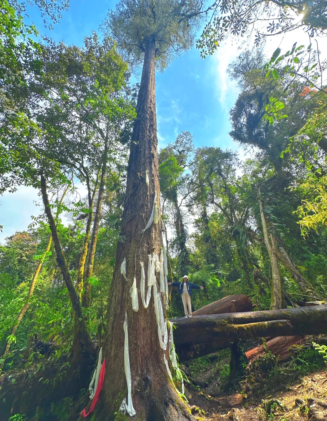 随后我们会安排向导带大家一同进入这片原始森林,重走一次胡歌也亲自去过的经典线路—探寻不丹松树王。路线比较简单容易,往返大概也就2-3公里,耗时1个小时多一点。里面真的绝美!动物和植物爱好者天堂。雨天森林有一些虫蚁,一定要长袖长裤!最后到达原始森林树王“辛达布”,高76.8米不丹松树王,约25层楼。
