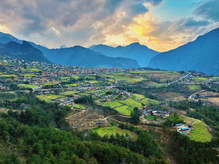 早餐后出发,离开独龙江,临近【丙中洛】,驱车上贡当神山,先俯瞰【怒江第一湾】【桃花岛】,和丙中洛田园风光。