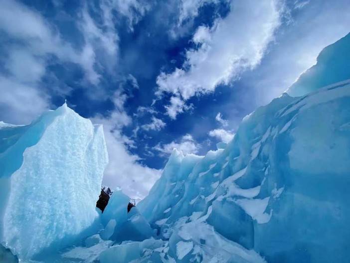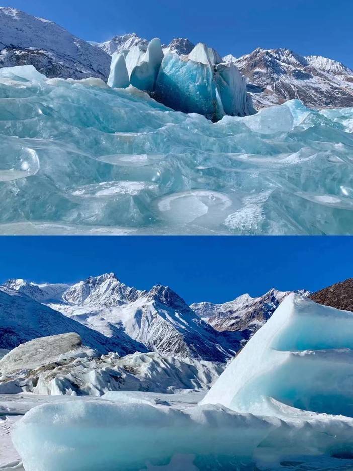 沿着察隅河逆流而上,翻越【德姆拉垭口】(海拔4900米),下山后便来到一片高山牧场,草甸尽头是一大片银装素裹的冰川。驱车行进,前往帕隆藏布江的源头【来古冰川】参观,来古冰川是世界三大冰川之一,万年蓝冰块,晶莹剔透的蓝色冰川,壮观的冰河时代。随后前往【然乌湖】(海拔3850M)游玩,如天气好可看到然乌湖虎斑霞绮的日落景观,晚上入住波密县酒店。