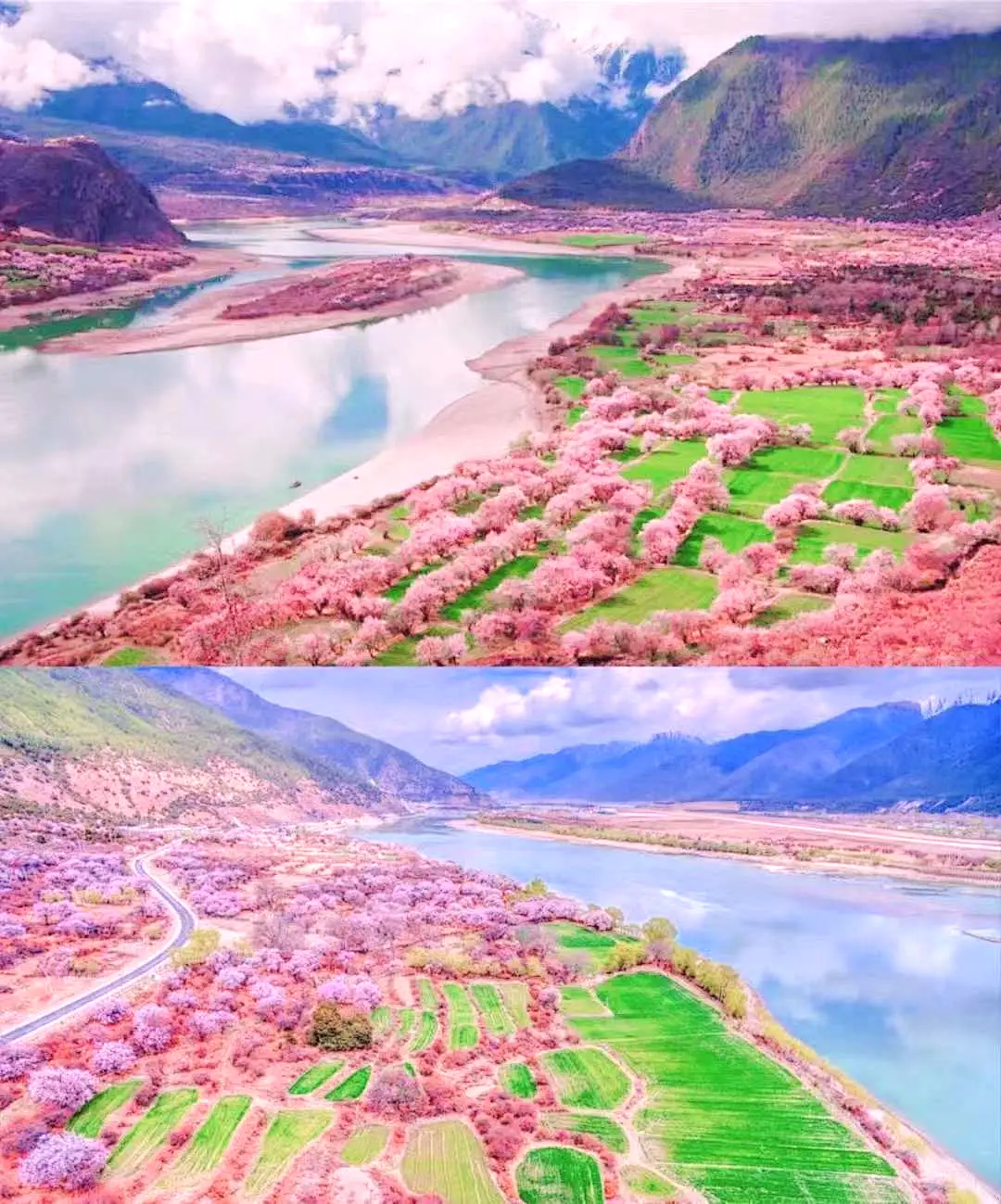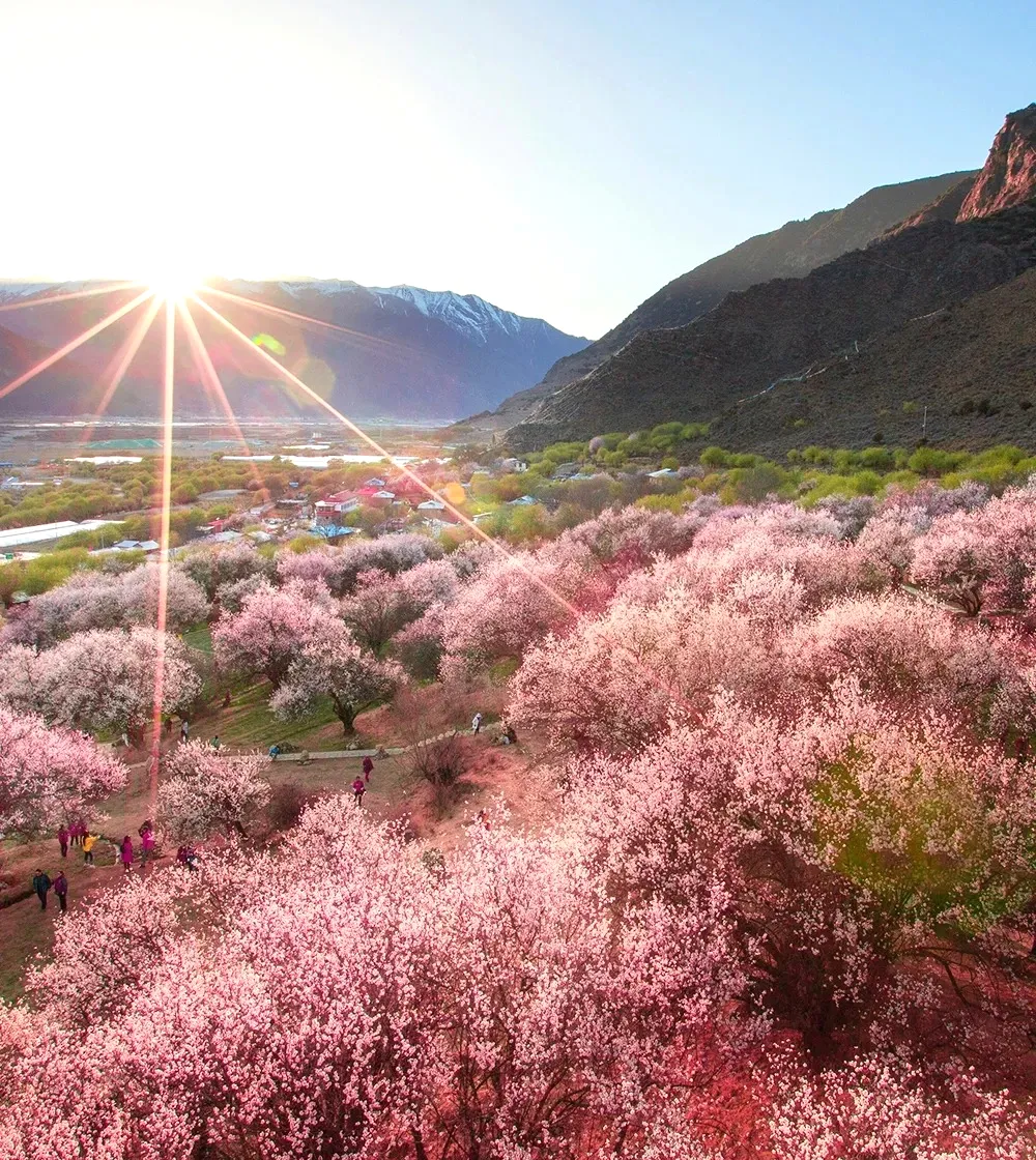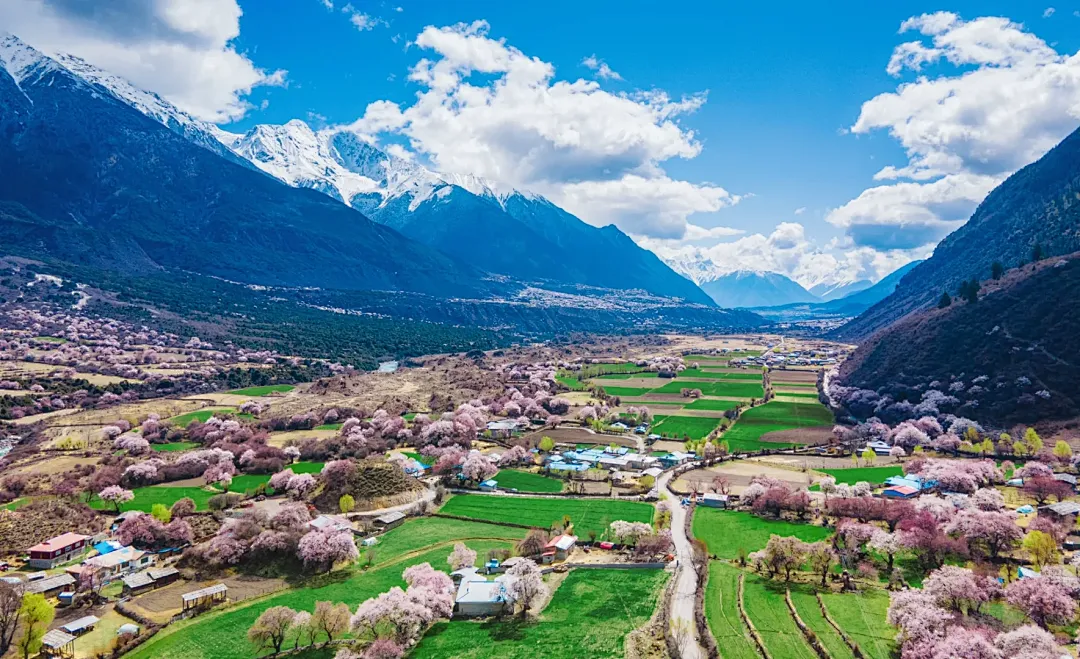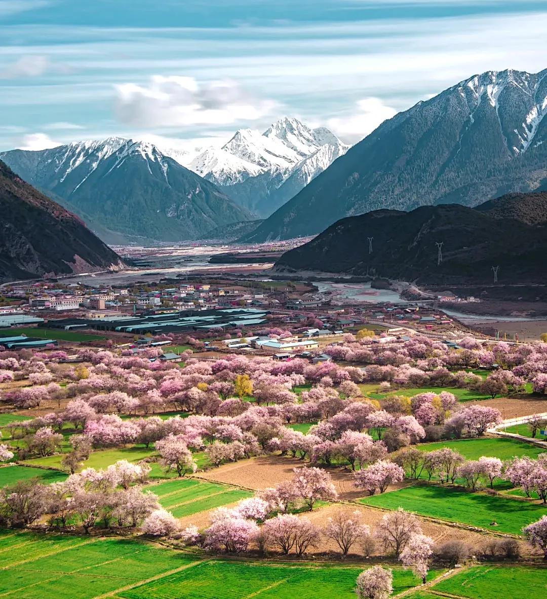 随时前往林芝【嘎拉桃花村】,林芝的【嘎拉村】漫山遍野的桃花开始铺满山坡,绵延至河谷。大株的桃花树如同桃花仙子,簇立在尼洋河畔,雪山之下,与云朵相拥,美到令人窒息。游玩结束后送到林芝结束行程,先送【林芝火车站】,然后再到林芝市区解散。