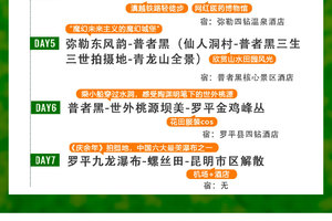 【适合人群】: 本线行程安排景点丰富,且比较紧凑舒适。适合休闲游、深度游、行摄游等各类人群,在慢节奏中感受七彩云南绮丽风光。