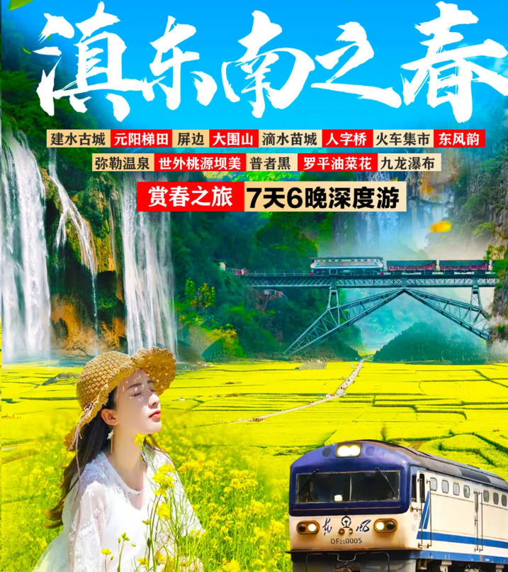 【醉美时节】:独家设计规划经典滇东南环线游,前往《庆余年》《舌尖》《三生三世》《爸爸去哪儿》等影视拍摄地,探秘滴水苗城—屏边小城,畅享罗平油菜花季,带您在最美的季节看醉美的风景。