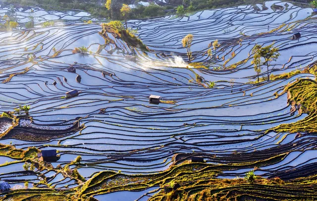 早上6点起床集合,前往日出最佳地——【多依树梯田】拍摄日出。朝阳透过云层射出光芒,穿过薄薄晨雾架起彩色的桥梁。多依树拍摄结束后,9点左右前往【爱春】拍摄蓝色梯田,后到【阿者科村梯田】继续深入拍摄梯田美景,因拍摄过《无问西东》而出名的的阿者科村,不仅是观看云海的好地方,还是看蘑菇房的最佳地,一般游客都少有去到。在村里哈尼家访后,我们沿路可见蘑菇房、石磨、水车、芭蕉、山间小道、梯田等,并亲自来一段梯田徒步,走到田埂上体验哈尼族的伟大杰作!