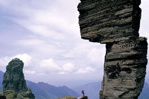 西线上梵净山,到达山顶草甸层后,立于山头的一尊奇石,像赞美人而伸出的大拇指:你是第一!据说清朝大书法家严寅亮(书写颐和园匾额)书写“黔山第一”也来自它的灵感!