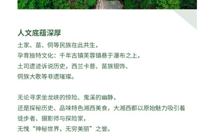 酒店早餐后告别长沙,驶向神秘湘西。 石堤镇自由中餐。中餐后前往坐龙峡。开始徒步探险,感受悬崖游道的惊险与地质奇观,而后徒步抵达土家族大寨。在大寨民居中感受正宗土家盛宴,餐后乘车到芙蓉镇入住酒店。