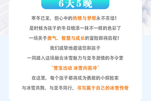 随后,前往【专业雪场】,开启为期3小时的滑雪初体验!不会滑雪的家庭可自行选择请专业的滑雪教练将进行基础指导,爸爸妈妈可以和孩子们一起,从蹒跚学步到勇敢滑行,在一次次摔倒与站起中,收获满满的成就感与欢笑。