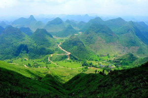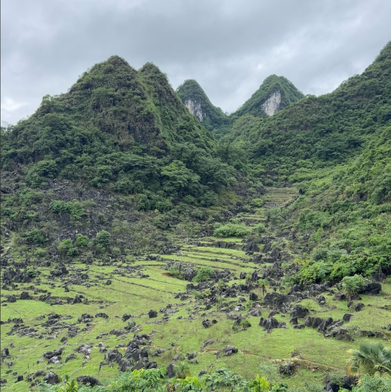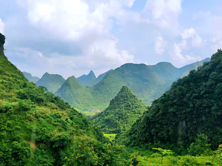 绿树掩映下嶂峰谷壑苍秀含幽,山湾天然的石林雄奇俊美,苍峰叠巘,