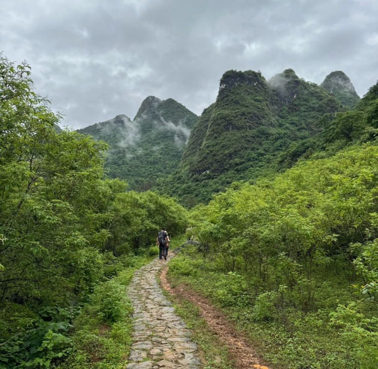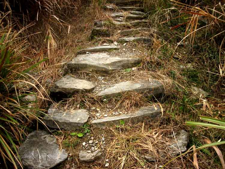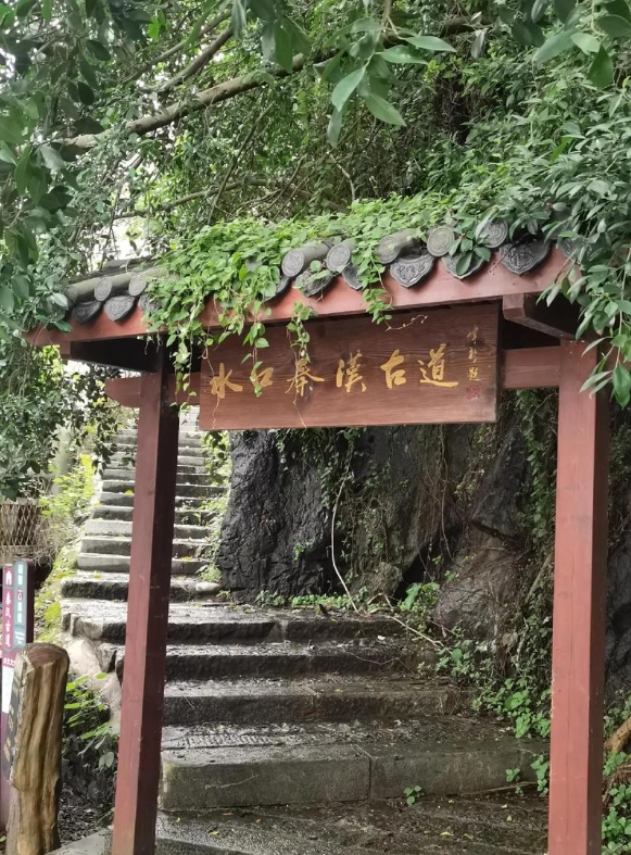 行走在隐隐约约的石板路上,沿着依稀可见的印记找寻着它的原貌,古道经年累月被水流冲刷已经垮掉,露出白黄的裸土。