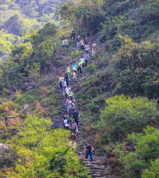 古道精华段,沿途可见苍翠山景、湍湍溪流、古朴石桥和红枫野花等各式植被,